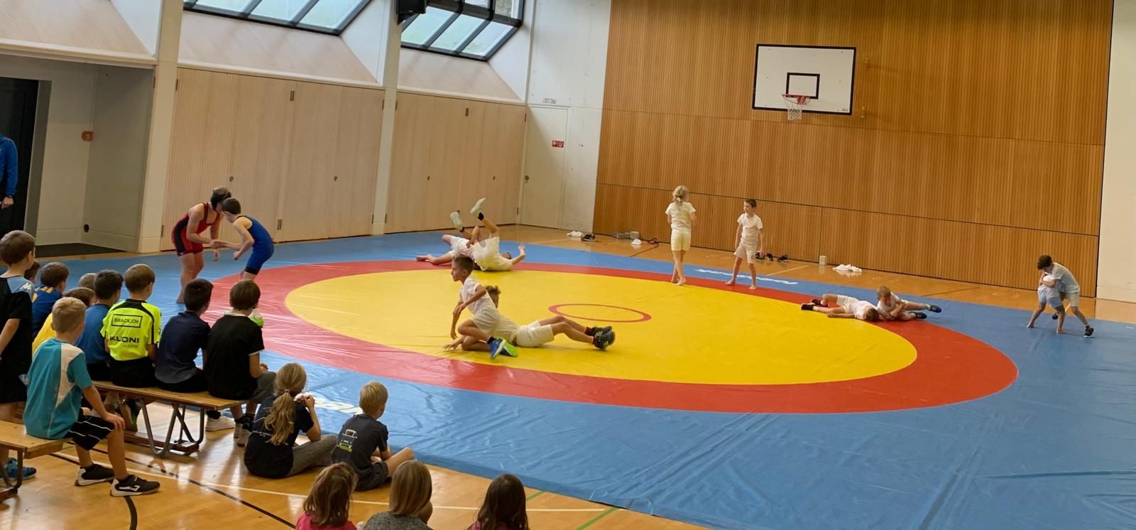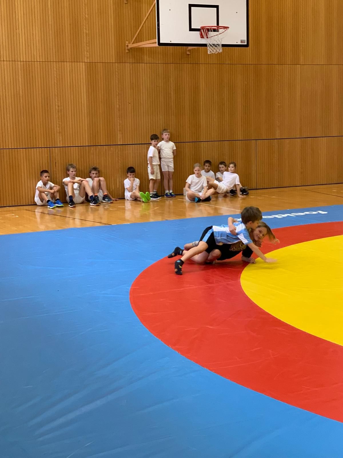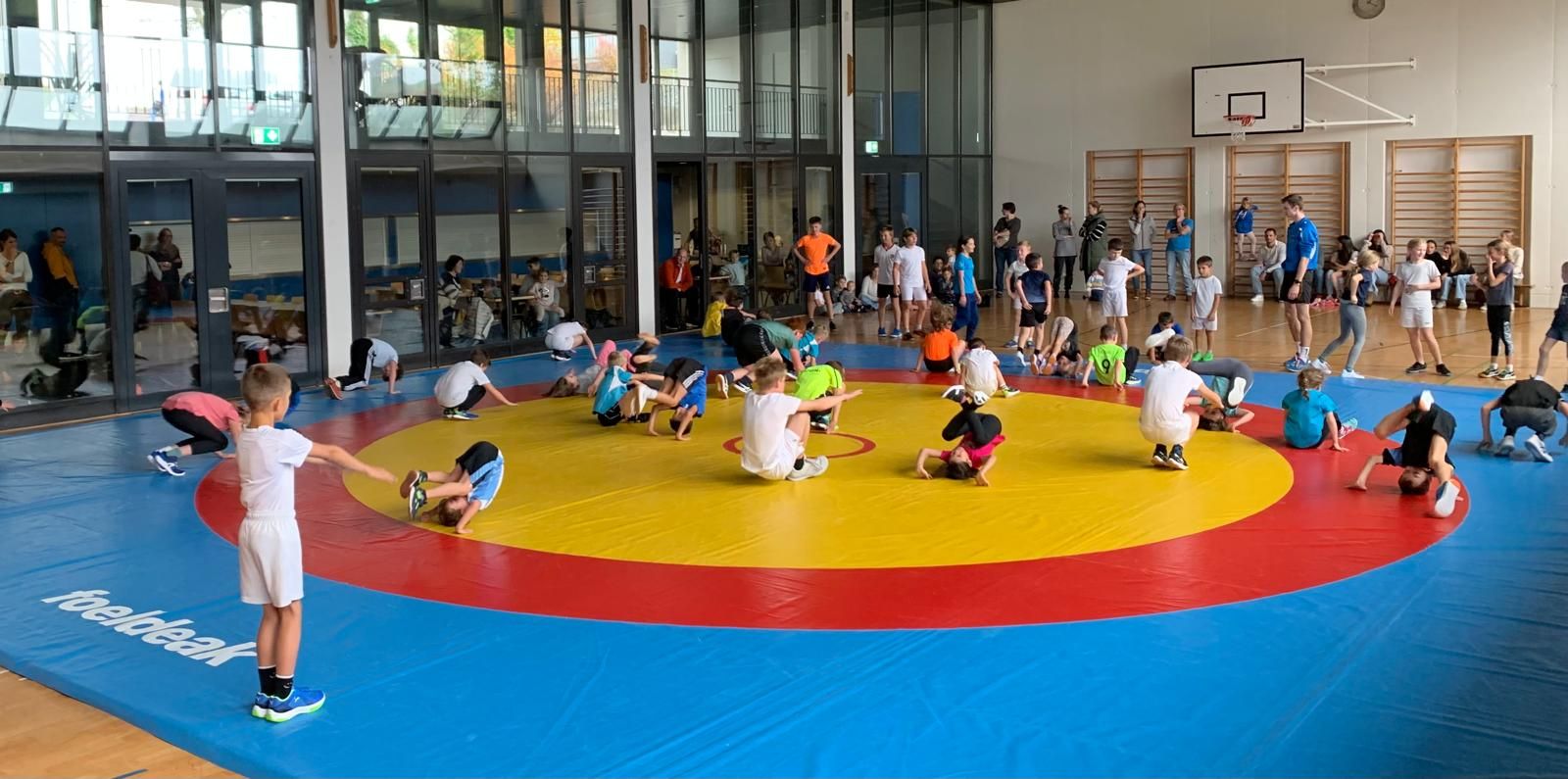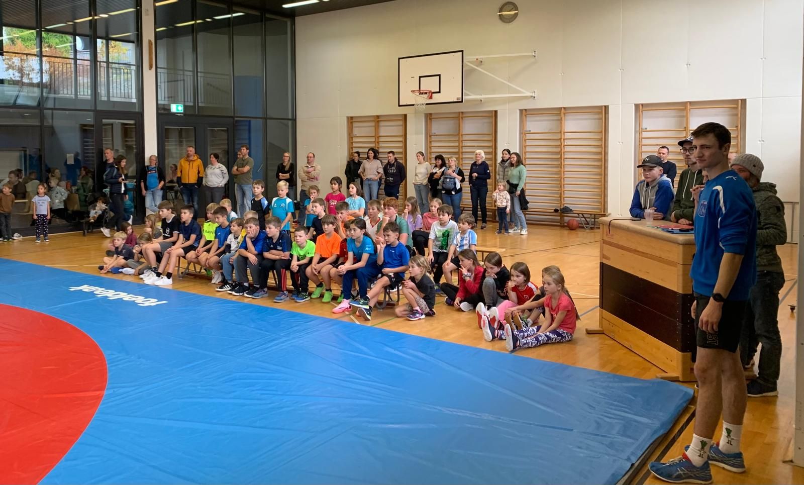 Am Samstag fand der beliebte Klassenwettkampf in der Mehrzweckhalle statt. 46 Kinder vom Kindergarten bis zur 6. Klasse aus den Schulen Eigenthal, Schwarzenberg und Malters waren vertreten. Die Disziplinen wurden in diesem Jahr bedingt durch das schlechte Wetter angepasst, so dass die Jungen und Mädchen ihr Können mit Pendellauf, Standsprung und Medizinball stossen unter Beweiss stellen und dann im zweiten Teil des Wettkampfs beim Ringen auf der Matte ihre Kräfte messen konnten.
