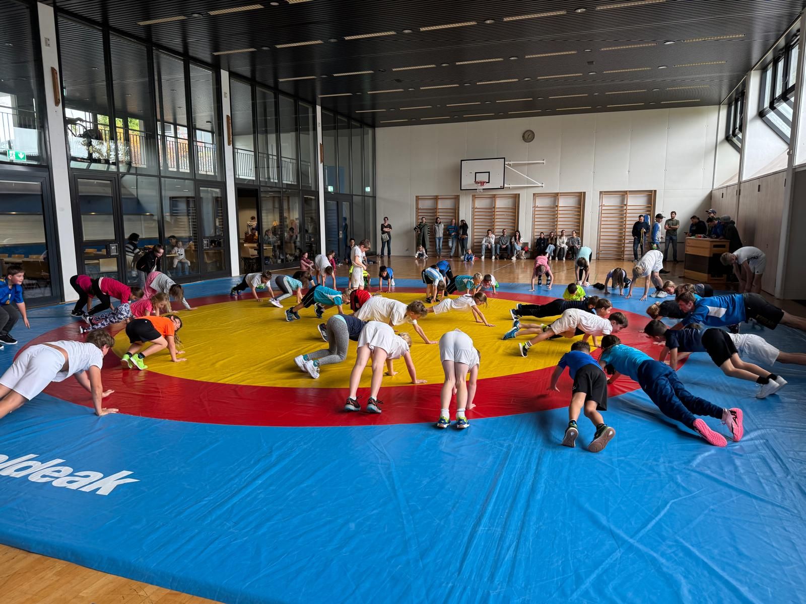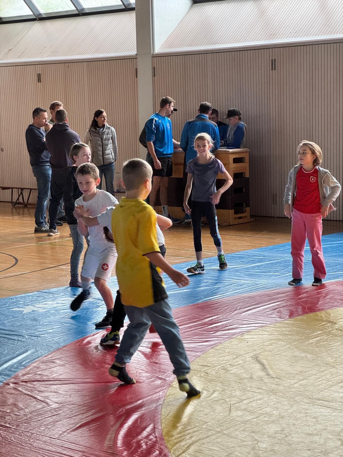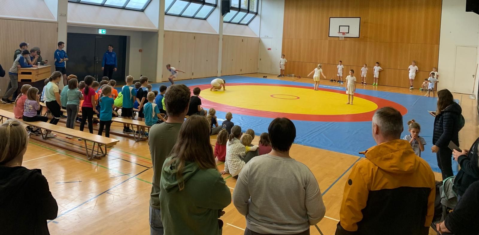 Am Samstag fand der beliebte Klassenwettkampf in der Mehrzweckhalle statt. 46 Kinder vom Kindergarten bis zur 6. Klasse aus den Schulen Eigenthal, Schwarzenberg und Malters waren vertreten. Die Disziplinen wurden in diesem Jahr bedingt durch das schlechte Wetter angepasst, so dass die Jungen und Mädchen ihr Können mit Pendellauf, Standsprung und Medizinball stossen unter Beweiss stellen und dann im zweiten Teil des Wettkampfs beim Ringen auf der Matte ihre Kräfte messen konnten.