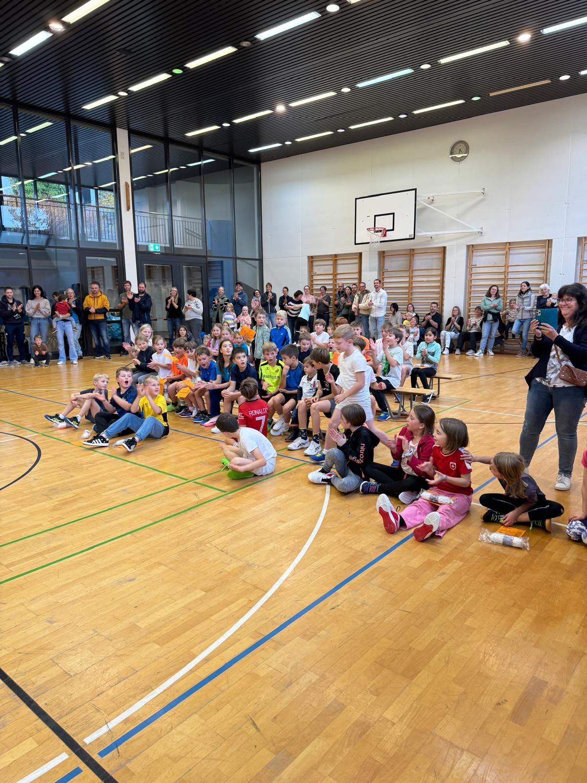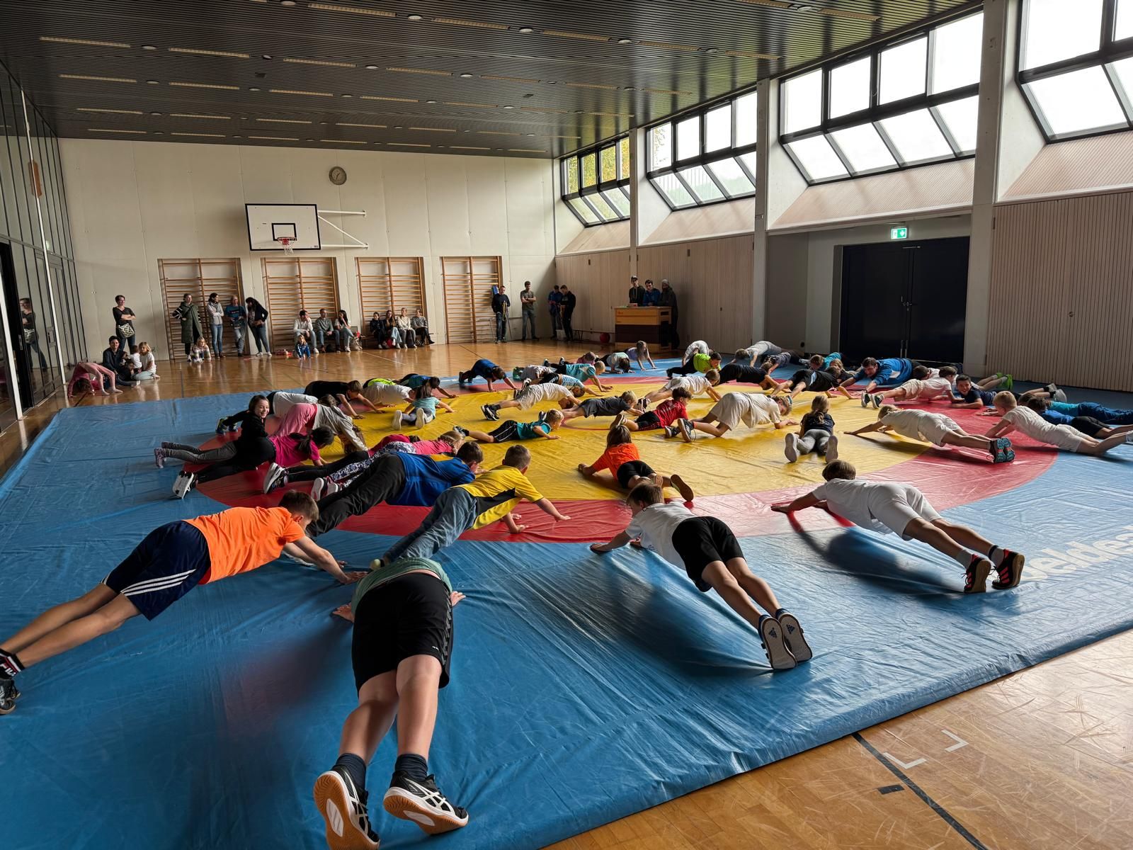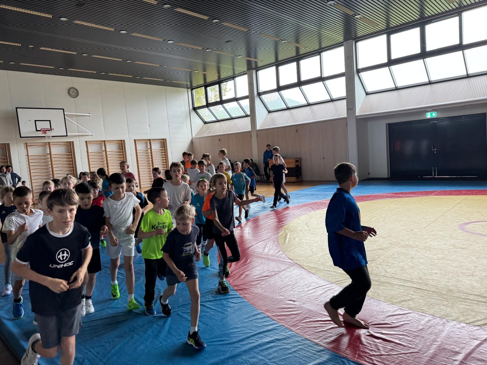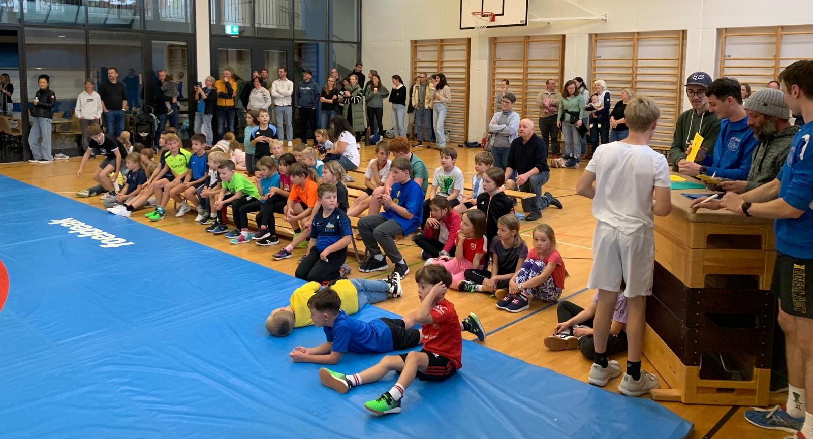 Am Samstag fand der beliebte Klassenwettkampf in der Mehrzweckhalle statt. 46 Kinder vom Kindergarten bis zur 6. Klasse aus den Schulen Eigenthal, Schwarzenberg und Malters waren vertreten. Die Disziplinen wurden in diesem Jahr bedingt durch das schlechte Wetter angepasst, so dass die Jungen und Mädchen ihr Können mit Pendellauf, Standsprung und Medizinball stossen unter Beweiss stellen und dann im zweiten Teil des Wettkampfs beim Ringen auf der Matte ihre Kräfte messen konnten.
